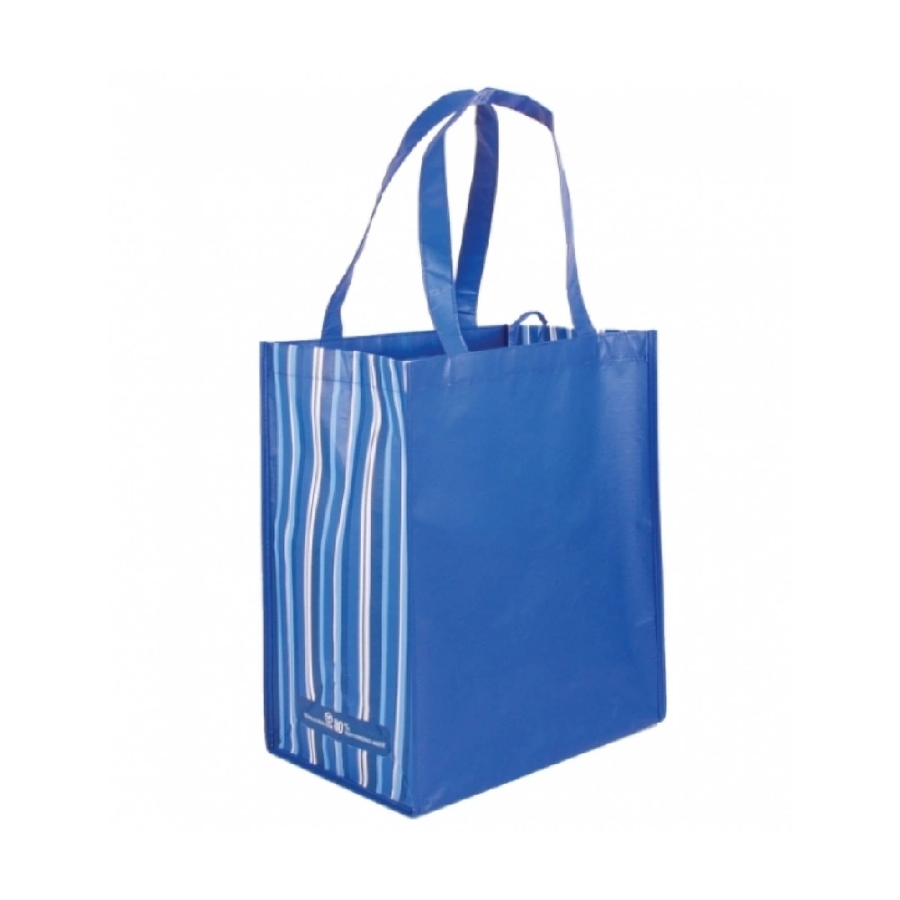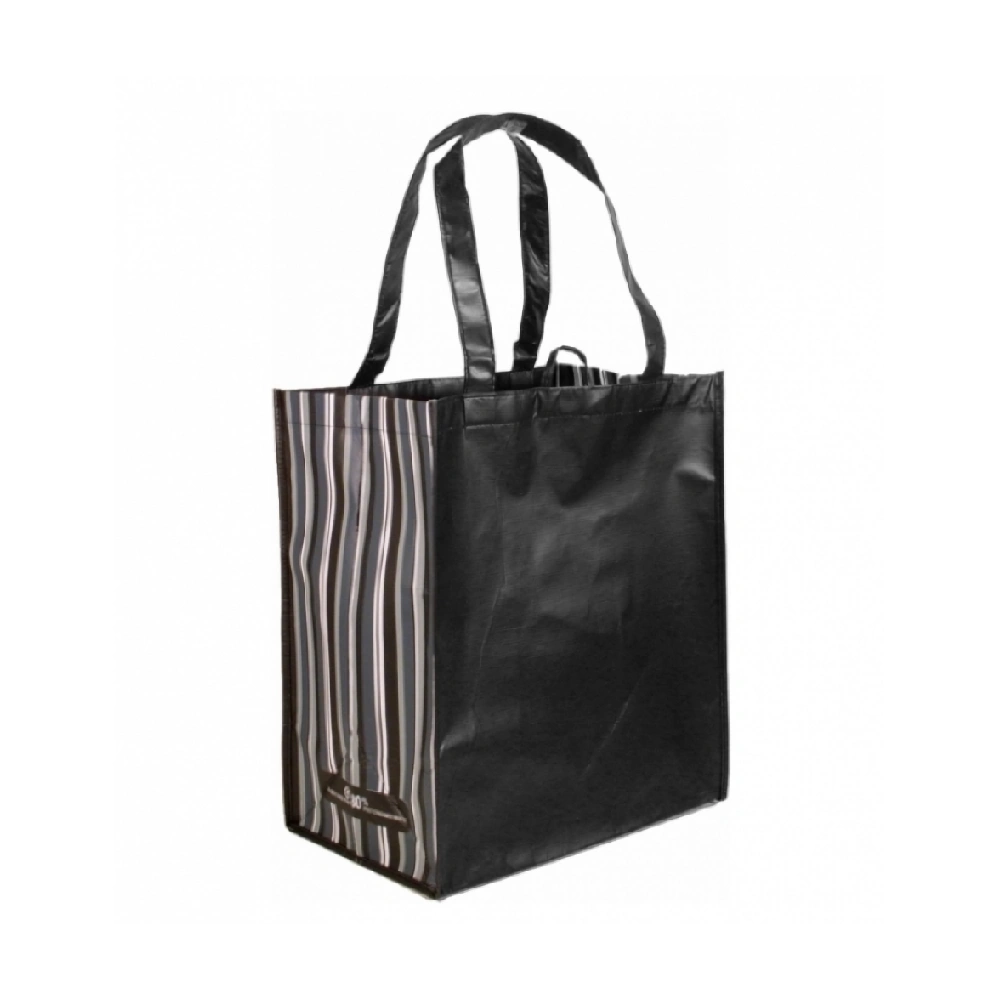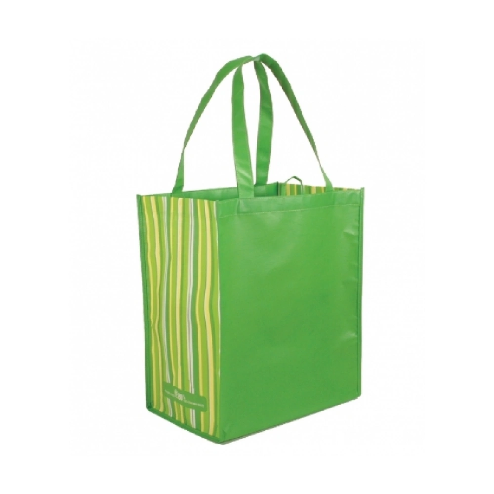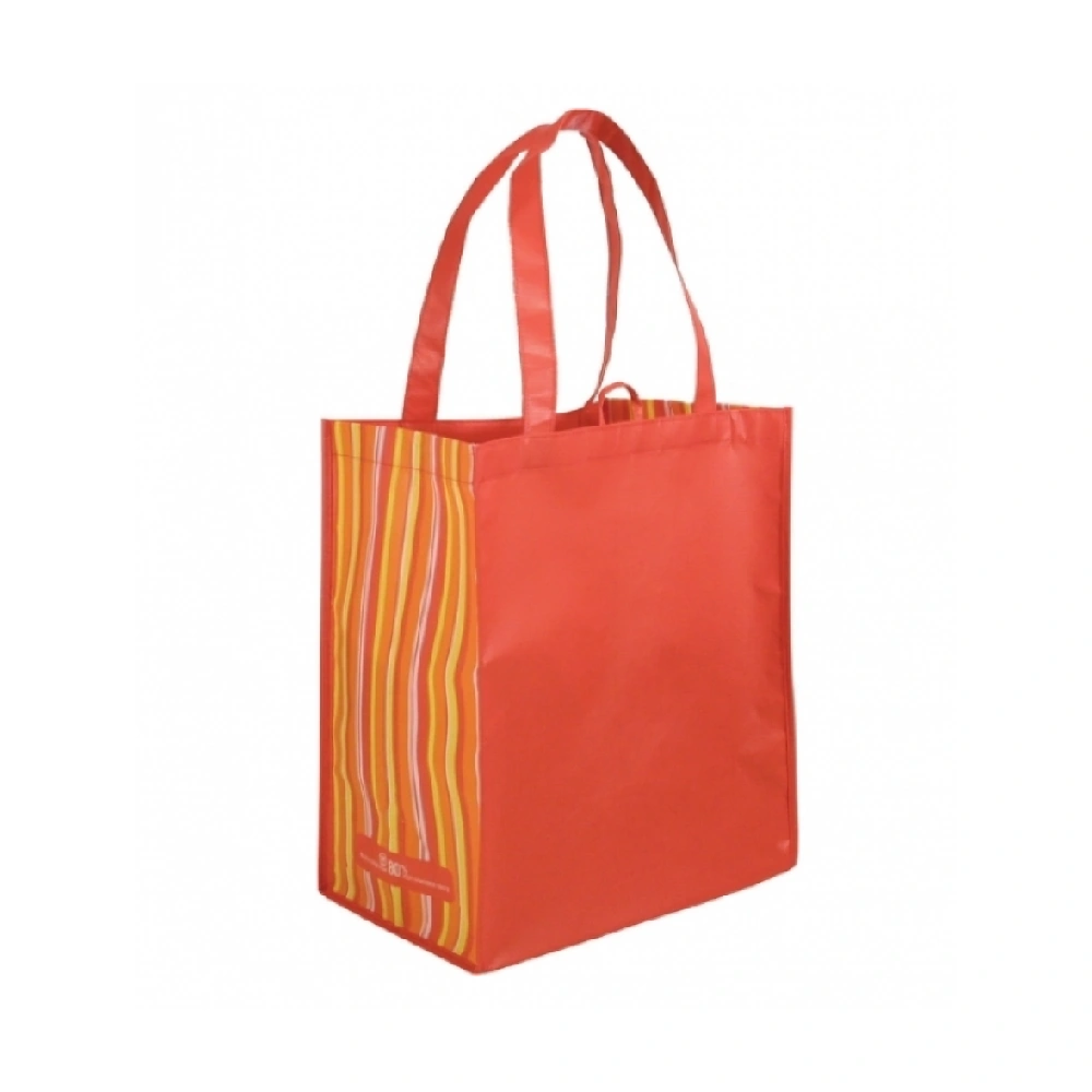 Our custom printed tote bags are made from durable RPET non-woven fabric, derived from 100% recycled plastic bottles, combined with a matte OPP lamination for a smooth finish and added water resistance. These eco-friendly printed tote bags offer a stylish striped design, reinforced stitching, and comfortable RPET handles for heavy loads.